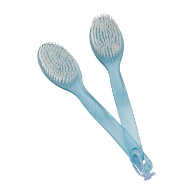 Blue Curved Long Handle Back Washing Brush With Oval Brush Head Images |